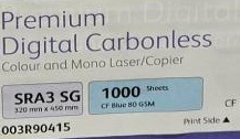 Premium Digital Carbonless, isekopeeruv, SRA3, 80 gsm, blue, (CF blue - Coated Front (alumine leht), 1000 lehte kastis , SRA3 erimat
