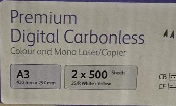 Premium Digital Carbonles, isekopeeruv, A3, 2-set, 80 gsm, white/yellow, (CB white - Coated Back (pealmine leht) (CF yellow - Coated Front (alumine leht), 250 komplekti =500 lehte pakis, A3 erimat